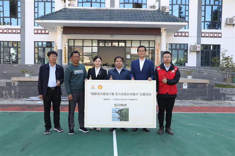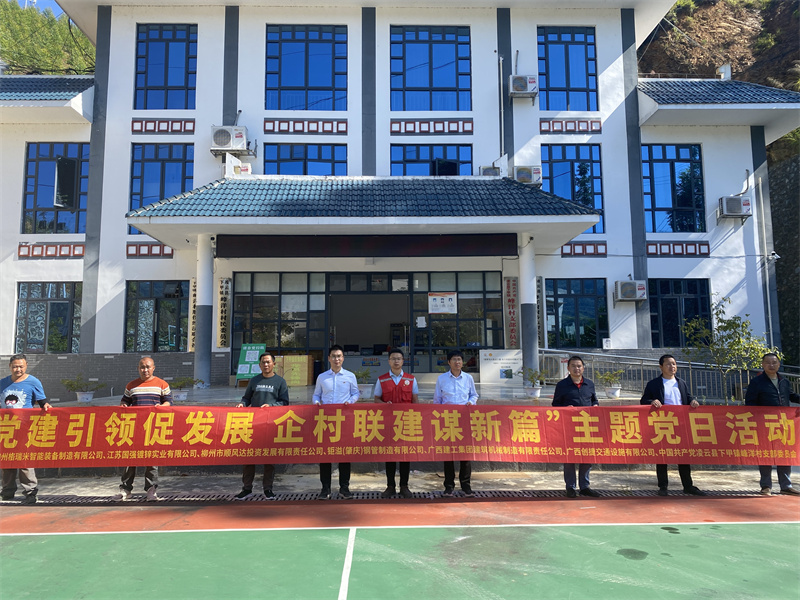 ▲机械院下属企业柳州格瑞米公司组织5家爱心企业捐赠价值2.8万元的基础设施建设物资,壳牌公司、商贸公司向峰洋村捐赠太阳能路灯