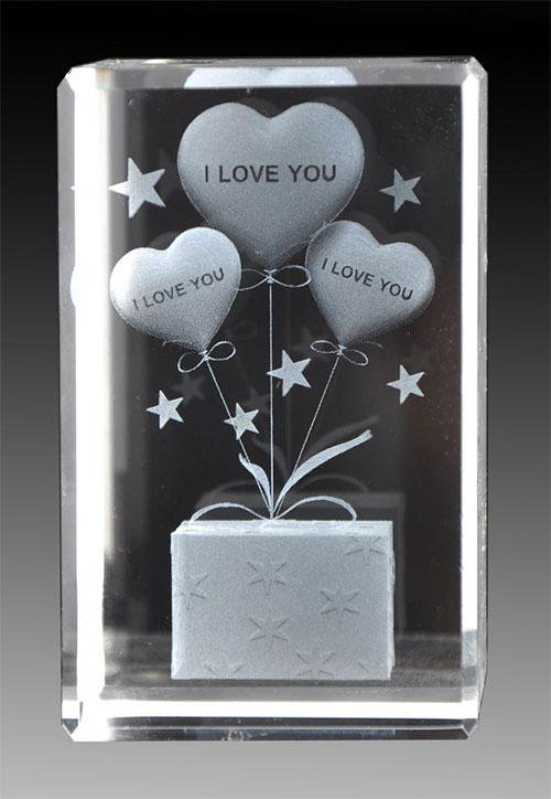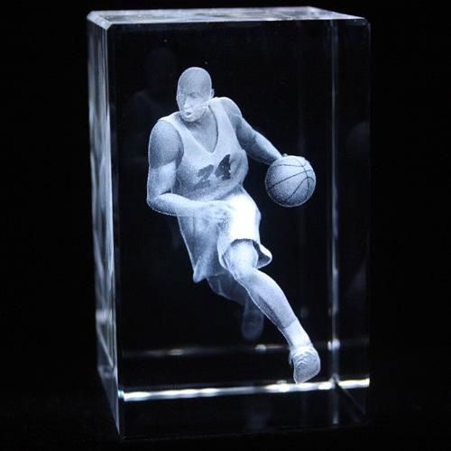 在水晶、玻璃等透明材料内雕刻平面或三维立体图案。