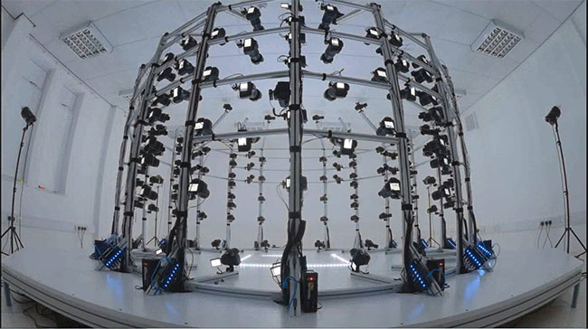 该系统通过软件控制128个高精度CCD摄像头进行阵列式多角度同时拍照,形成0.1秒内拍摄物体个角度的照片组,将照片组导入专业数据处理软件,转换成高质量带贴图的色彩三维人像,并能实现对动态物体的瞬时捕捉。