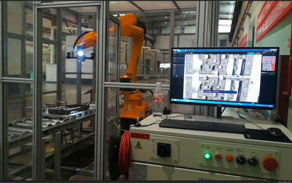 为满足快速获取生产零部件精确检测结果的需求,全自动机器人在线检测系统集成了机器人、自动识别系统、光学三维扫描系统、计算机图像处理系统、滚筒输送线及托盘等多种技术,实现自动识别输送线上零部件类型,并匹配相应轨迹程序驱动机器人对零部件表面结构进行光学三维自动扫描、自动拼接,从而自动获取零部件完整三维点云数据的系统,具有不贴点、不喷粉、全自动、高精度、高效率、方便性、稳定性的特点。